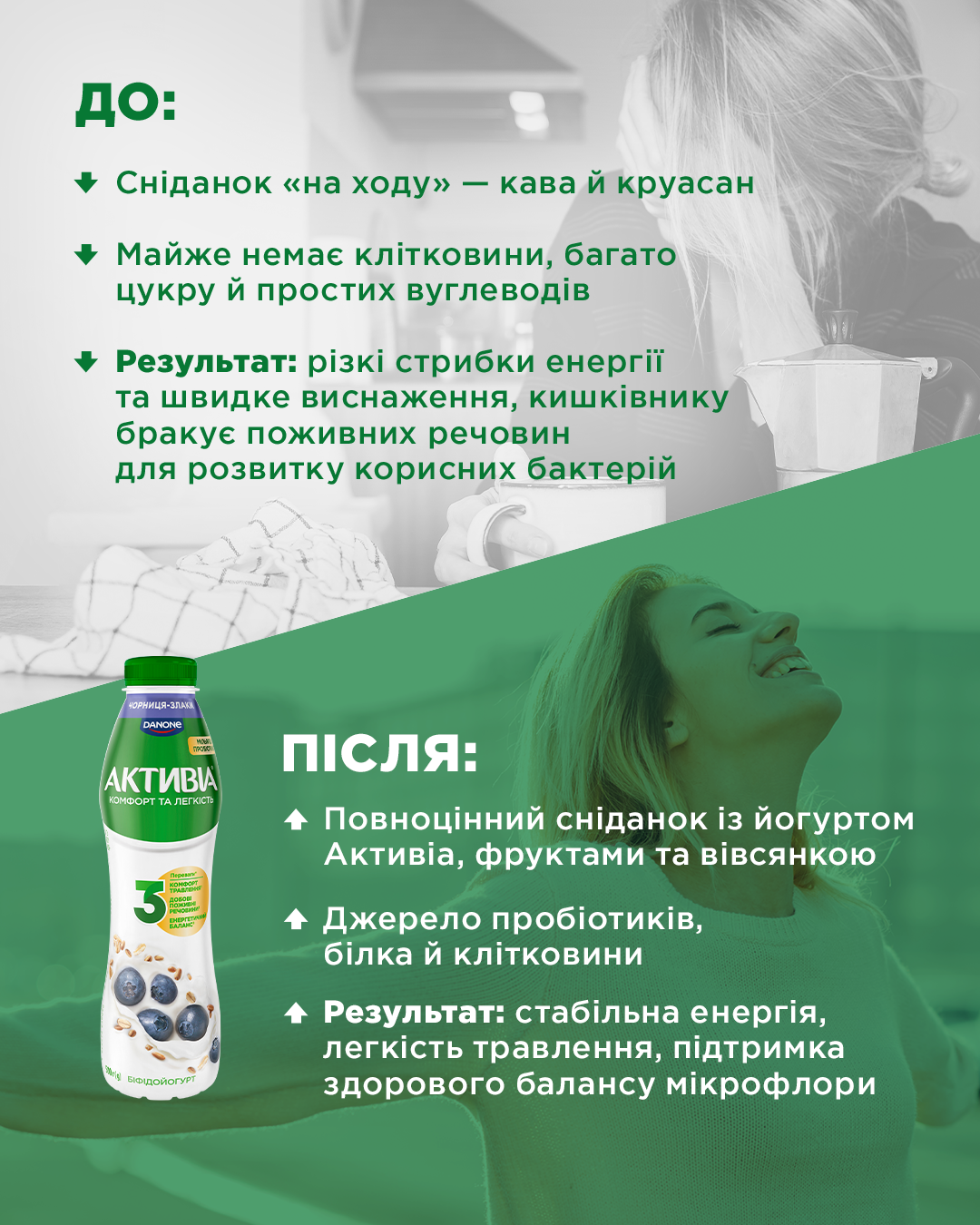 Підтримуючи баланс кишкової флори, ви зміцнюєте енергію, імунітет і навіть настрій. Адже гарне самопочуття починається зсередини! Дізнайтеся більше про підтримку здорового мікробіому на сайті Activia 👉